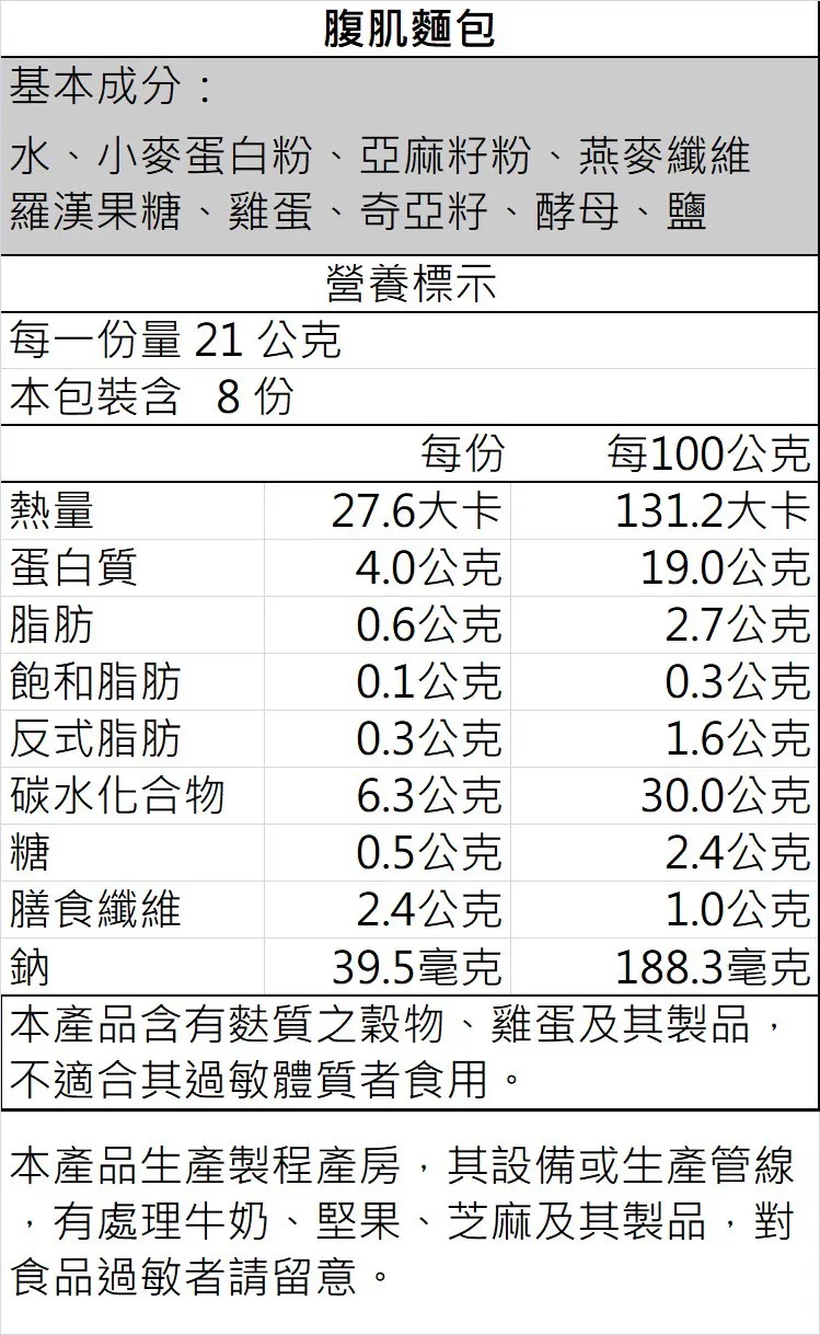 • 口感特色: 紮實有嚼勁,健美感十足的八塊肌造型,不管是當早餐還是下午茶,視覺跟胃口都大滿足!